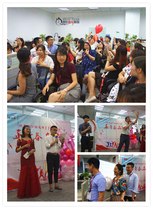 一段由RCC制作的十一周年慶視頻拉開了慶典活動的序幕。視頻中,敘寫了這一年來公司取得的驕人成績與開展的活動、PK戰(zhàn)中RCC員工們熱血的場面、客戶對RCC信息的評價片段、CEO在視頻中的致辭等內(nèi)容,震撼著每一名RCC人。RCC在2017——2018年所取得的諸多創(chuàng)新和進步、輝煌的成就和永不止步的發(fā)展態(tài)度,讓在場的每一名員工都倍感光榮和自豪。一個個輕松活潑的環(huán)節(jié)讓整個活動現(xiàn)場其樂融融,充分展現(xiàn)了RCC大家庭的團結(jié)與溫暖,把氣氛推向了高潮。公司領(lǐng)導(dǎo)還為眾多在RCC工作三年或以上的員工頒發(fā)了“忠誠員工特殊獎”,本次的頒獎把原先贈予金器的形式改為發(fā)放面額1000元到4000元的“成長券”形式,專門用于購買圖書、線上課程、健身卡,幫助老員工提升職場專業(yè)技能和能力、鼓勵他們積極鍛煉,保持健康的體魄。新的獎品形式不僅代表著公司感謝忠誠員工與公司共成長的情誼,還表明公司對員工全面發(fā)展的高度重視,公司也將一如既往地為更多有能力、有思想的員工提供更為廣闊的發(fā)展空間。最后,在團結(jié)與溫暖氣氛中,在全體RCC員工對公司的祝福里,公司十一周年慶典活動落下帷幕。